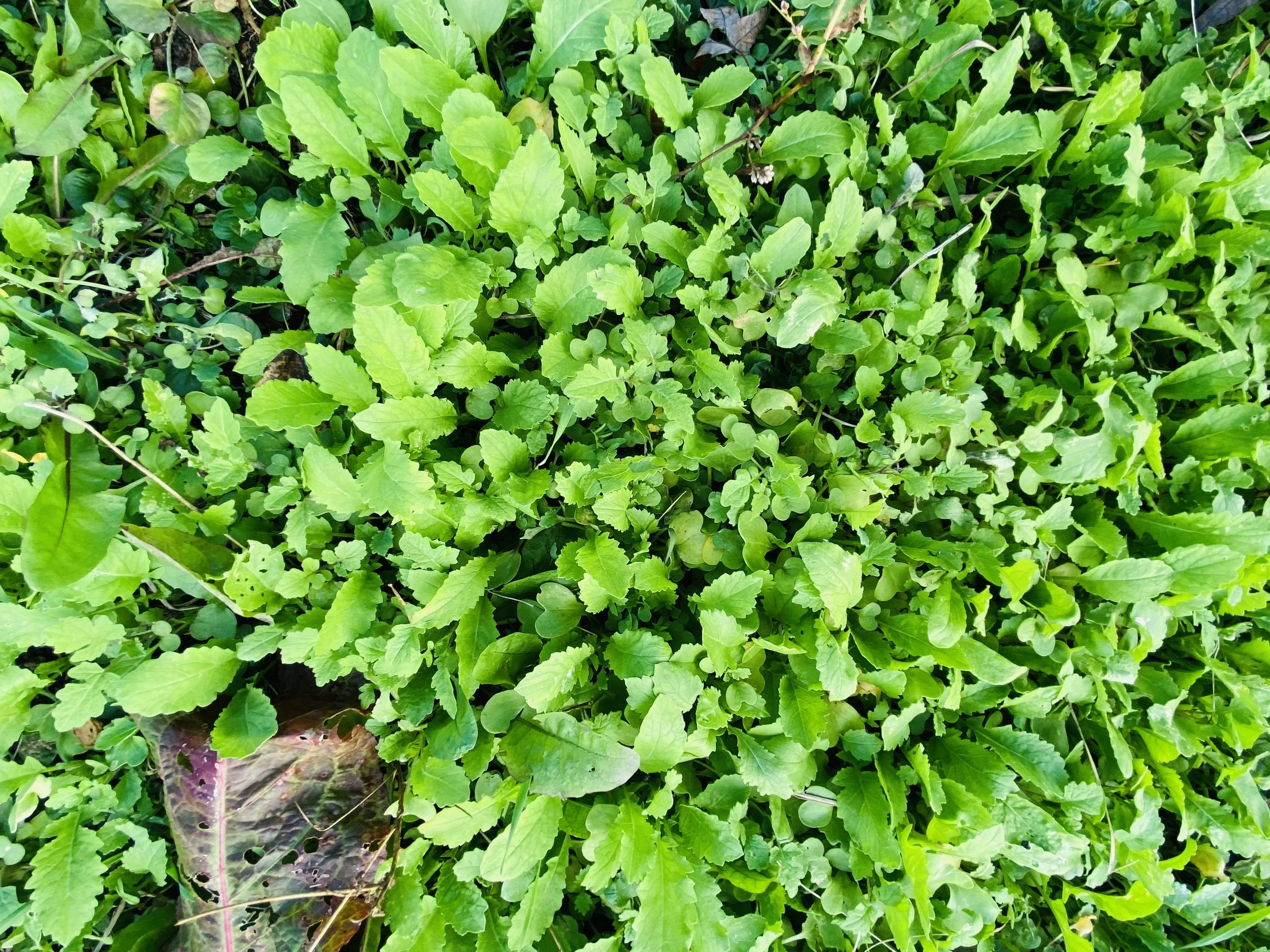 Intercropped vegetables are fitting food for the people and can be grown year after year around perennial fruits and medicinal herbs in their proper season. I will come back to this later, but in addition to being an effective means of controlling weeds, sowing vegetable seed among the weeds is also a powerful soil improvement technique. Legumes build up nitrogen, drillers like radishes soften the earth and make it more permeable for holding water, and the roots of all these plants take part in the rhizophagy cycle where nutrients are transferred via cells from fungal and microbial life to the plants and then back again to the soil. We are all about these cycles.